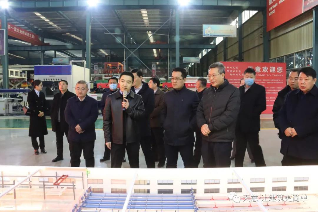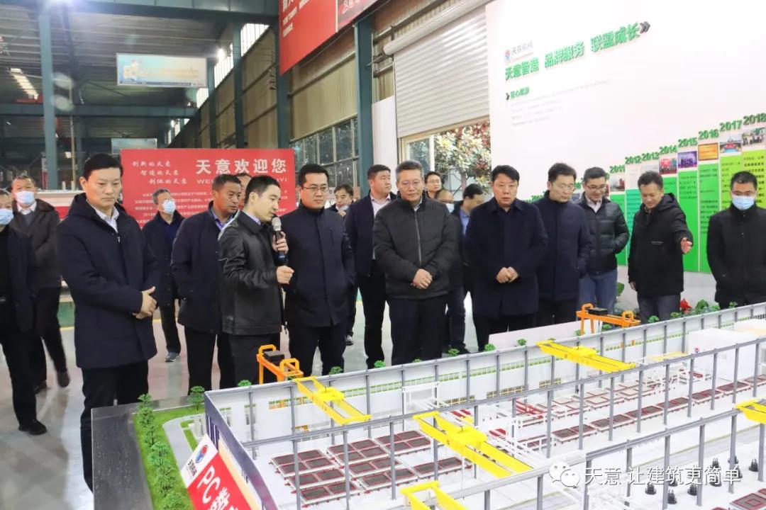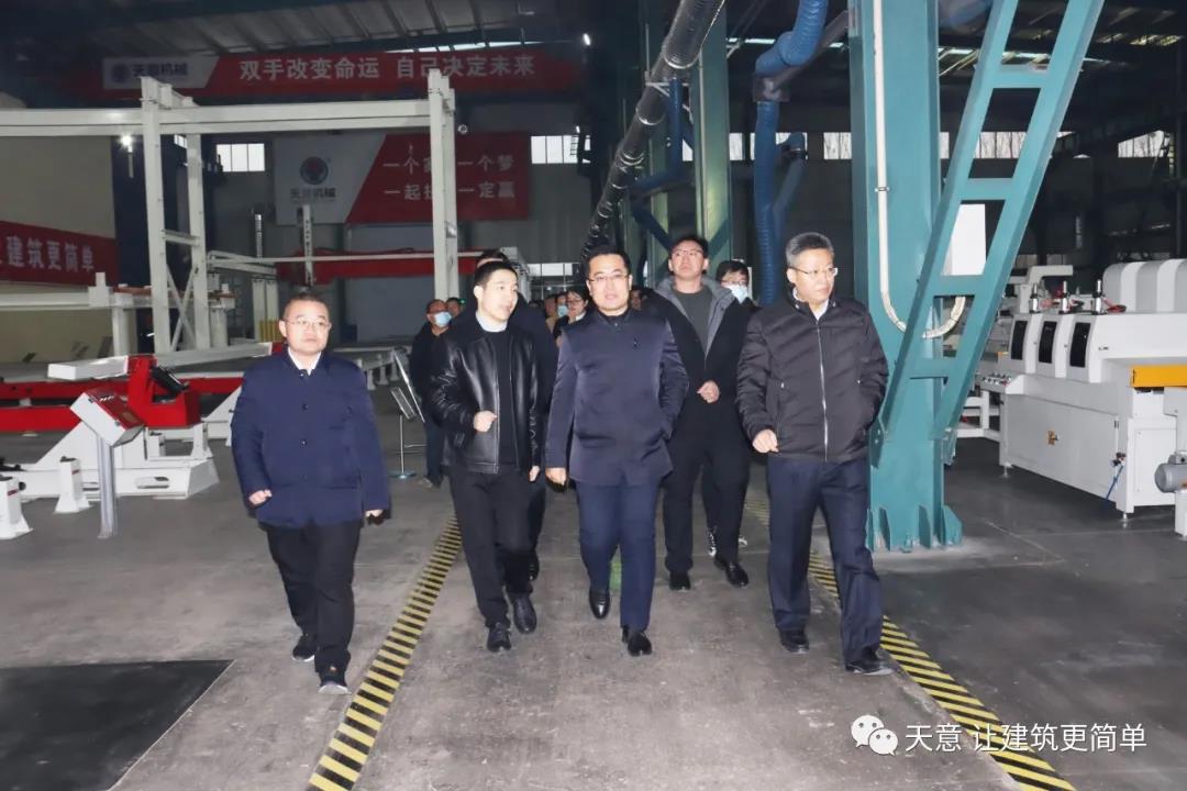 12月19日下午,嘉祥縣委副書記江峰一行蒞臨天意機械考察全市新舊動能轉(zhuǎn)換現(xiàn)場觀摩項目——裝配式建筑自動化PC生產(chǎn)線項目。兗州區(qū)區(qū)委副書記寇寧,發(fā)展和改革局副局長劉守全,天意機械總經(jīng)理劉海龍等領導陪同考察。