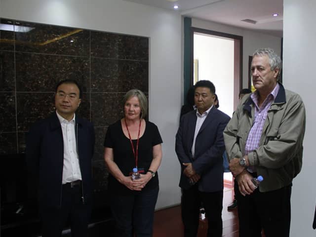 4月26日 澳大利亞外賓、山東大學(xué)材料科學(xué)與工程學(xué)院任教授、兗州區(qū)周區(qū)長一行蒞臨天意機械參觀指導(dǎo),集團董事長劉洪彬、副總經(jīng)理、戰(zhàn)略項目部部長孫為民、銷售經(jīng)理秦艷慧等全程陪同參觀。