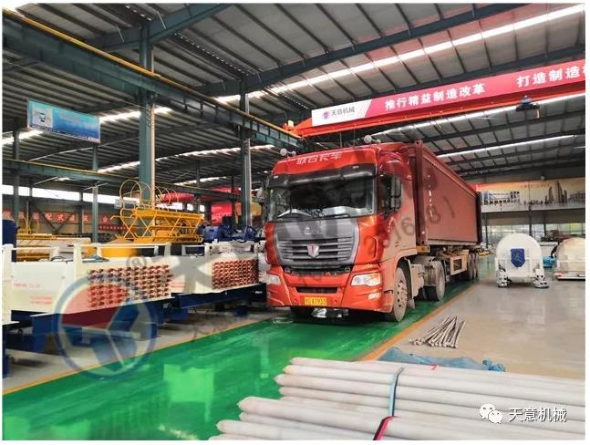 參展多,人氣旺,天意機(jī)械設(shè)備銷售情況持續(xù)向好,PC裝備、墻板裝備、保溫裝飾一體化板生產(chǎn)線等事業(yè)部在原有生產(chǎn)任務(wù)繁重的情況下,又陸續(xù)接到來(lái)自海外地區(qū)一批緊急求購(gòu)訂單,隨著發(fā)貨量不斷增大,發(fā)貨車排起長(zhǎng)龍,天意機(jī)械的貨物發(fā)運(yùn)系統(tǒng)面臨著很大的挑戰(zhàn)。