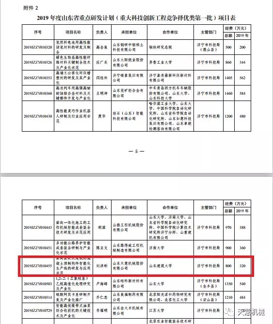 天意機(jī)械面向裝配式建筑的混凝土預(yù)制構(gòu)件智能化生產(chǎn)線(xiàn)的研發(fā)與應(yīng)用項(xiàng)目列入2019年山東省重點(diǎn)研發(fā)計(jì)劃,總計(jì)資金支持800萬(wàn)元。